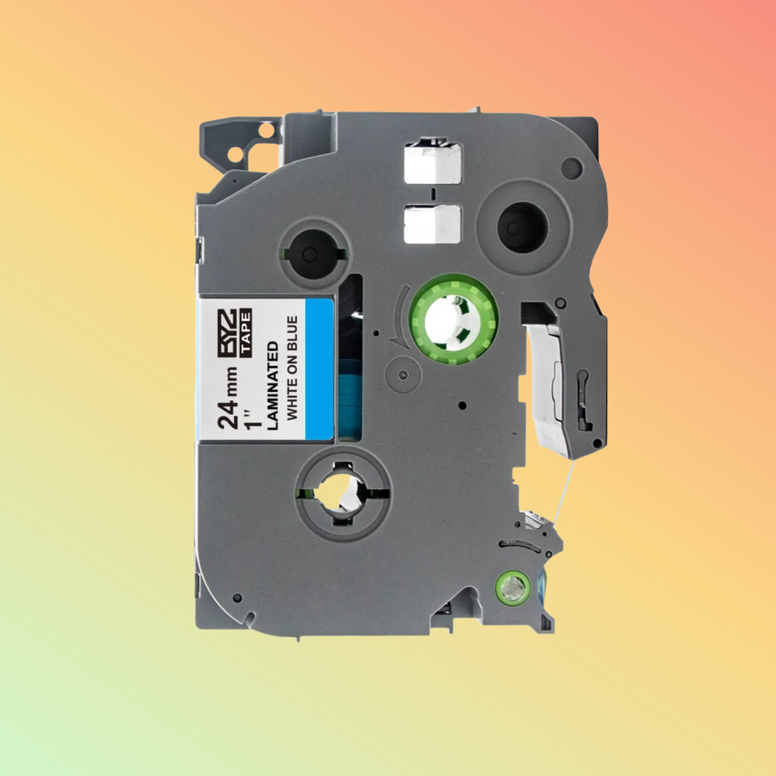 شريط الكاسيت الفارغ Blue Tze-555 عبارة عن شريط تسمية متين مقاس 24 مم، مثالي لإنشاء ملصقات واضحة وسهلة القراءة للاستخدام في المكاتب والصناعات.