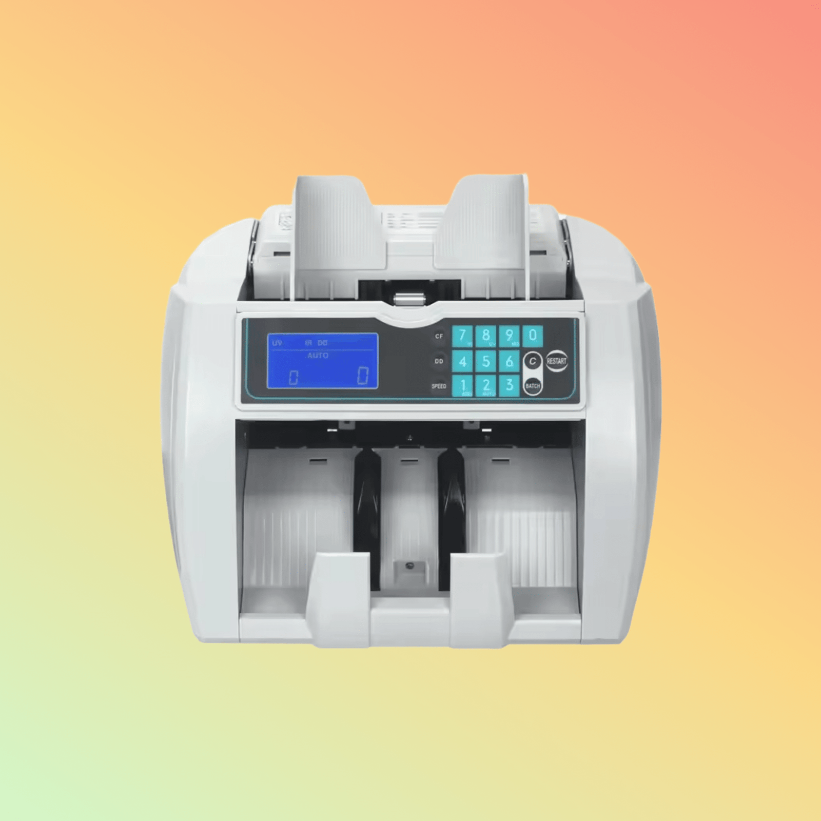 ما عليك سوى توصيل الجهاز، ووضع رزمة الأوراق النقدية في القادوس، واختيار وضع العد المطلوب. سيقوم الجهاز بعدّ الأوراق النقدية بسرعة، وسيُنبهك في حال اكتشاف أي أوراق نقدية مزورة.