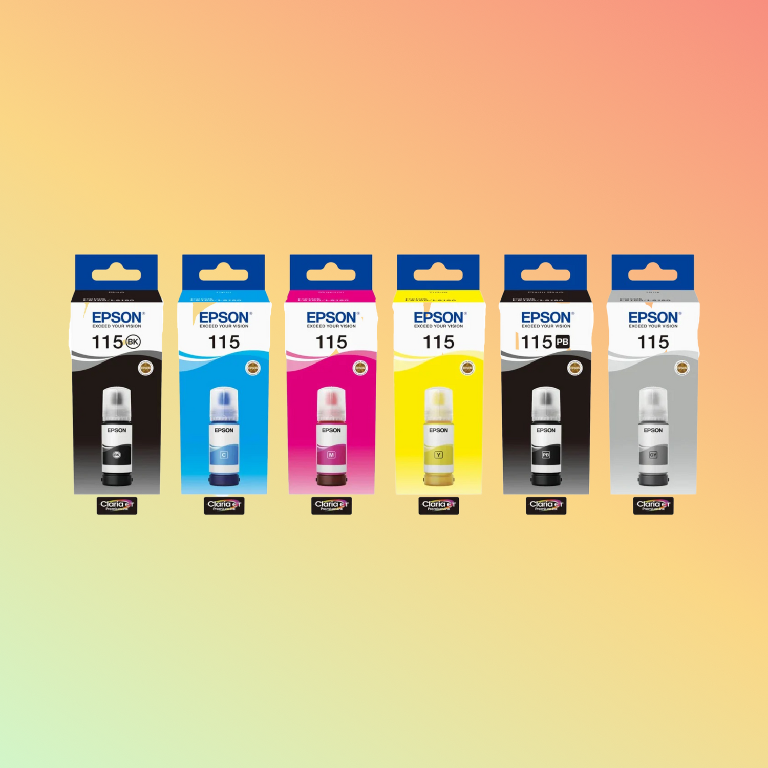 تعتبر مجموعة حبر إبسون 115 مثالية للاستخدام في استوديوهات التصوير الفوتوغرافي، ووكالات التصميم الجرافيكي، وشركات التسويق ، وأي بيئة عمل أو منزل تتطلب مطبوعات ملونة بجودة احترافية.