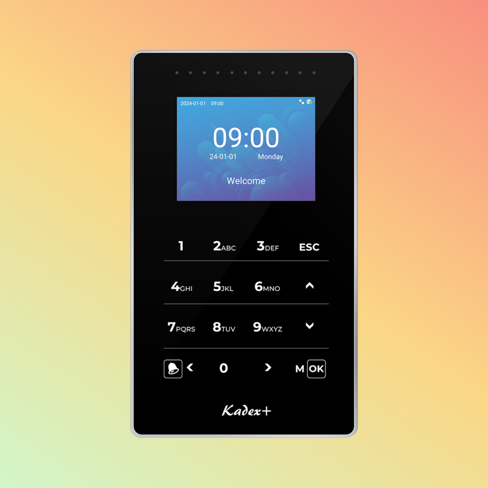 يقدم جهاز FingerTec Kadex+ حلاً سريعًا وآمنًا وغير بيومتري للتحكم في الوصول وتسجيل الحضور والانصراف . يضمن دعمه للتحقق من بطاقات RFID ورقم التعريف الشخصي (PIN) وكلمة المرور مرونة عالية، بينما تجعله سعته الكبيرة وخيارات التحقق متعددة الوسائط أداةً متعددة الاستخدامات للشركات بمختلف أحجامها.