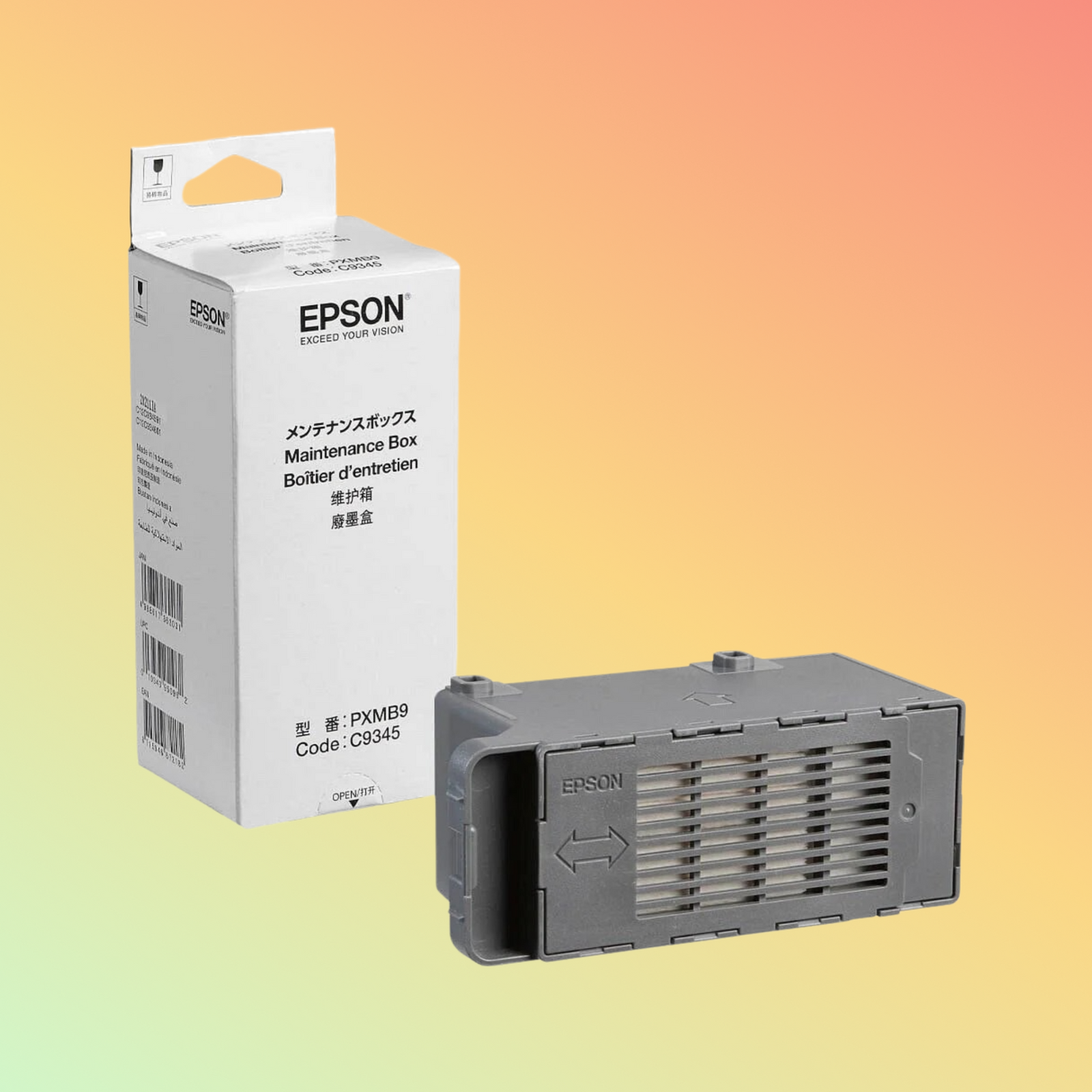 لتثبيت علبة صيانة حبر طابعة إبسون C9345 ، أزل علبة الصيانة القديمة من طابعتك واستبدلها بالجديدة. اتبع تعليمات الطابعة لضمان التركيب السليم والأداء الأمثل.