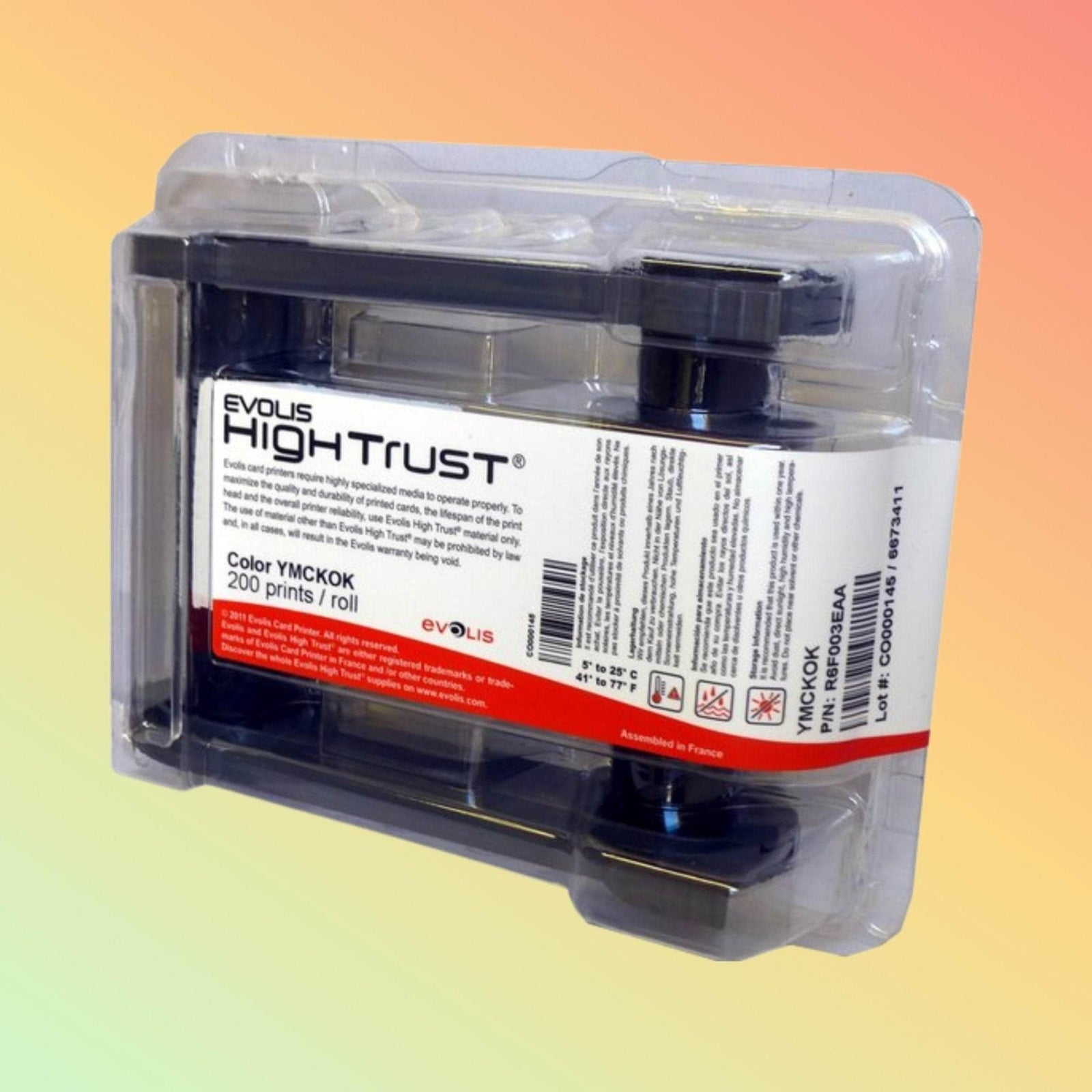 يشتهر شريط إيفوليس YMCKOK بجودة الطباعة والأداء المتميزين. ويشيد العملاء بقدرته على إنتاج مطبوعات بطاقات نابضة بالحياة، ودقيقة، ومتينة باستمرار، مما يجعله خيارًا موثوقًا به لجميع متطلبات الطباعة على الوجهين.