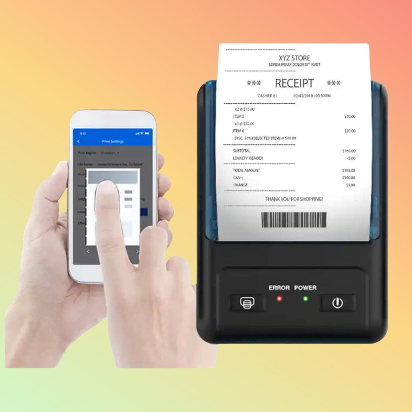 يتميز جهاز PT-R110 بتقنية طباعة الإيصالات الحرارية عبر البلوتوث، مما يتيح اتصالاً سلساً وطباعة سلسة من مختلف الأجهزة. تضمن تقنية الطباعة الحرارية الخطية الحصول على إيصالات عالية الجودة بسرعات تصل إلى 90 مم/ثانية، دون أي متاعب تتعلق بانحشار الورق. بفضل تصميمه المدمج وبنيته المتينة، صُمم الجهاز لتحقيق الكفاءة والموثوقية، مما يوفر المرونة اللازمة في بيئة الأعمال المتسارعة اليوم.