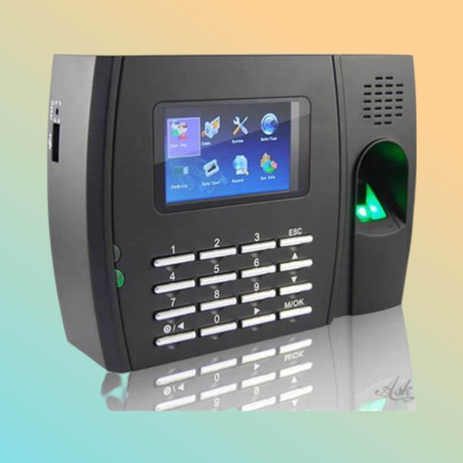 وصف المنتج: يتميز جهاز ZKT U300 بتصميم عصري، وهو مزود بشاشة TFT ملونة نابضة بالحياة مقاس 3 بوصات ولوحة مفاتيح لمس سهلة الاستخدام. ويتكامل تصميمه المتين مع معالج قوي وذاكرة واسعة، قادرة على استيعاب ما يصل إلى 80,000 نموذج بصمة إصبع و200,000 سجل معاملات، مما يجعله مثاليًا للشركات بمختلف أحجامها.