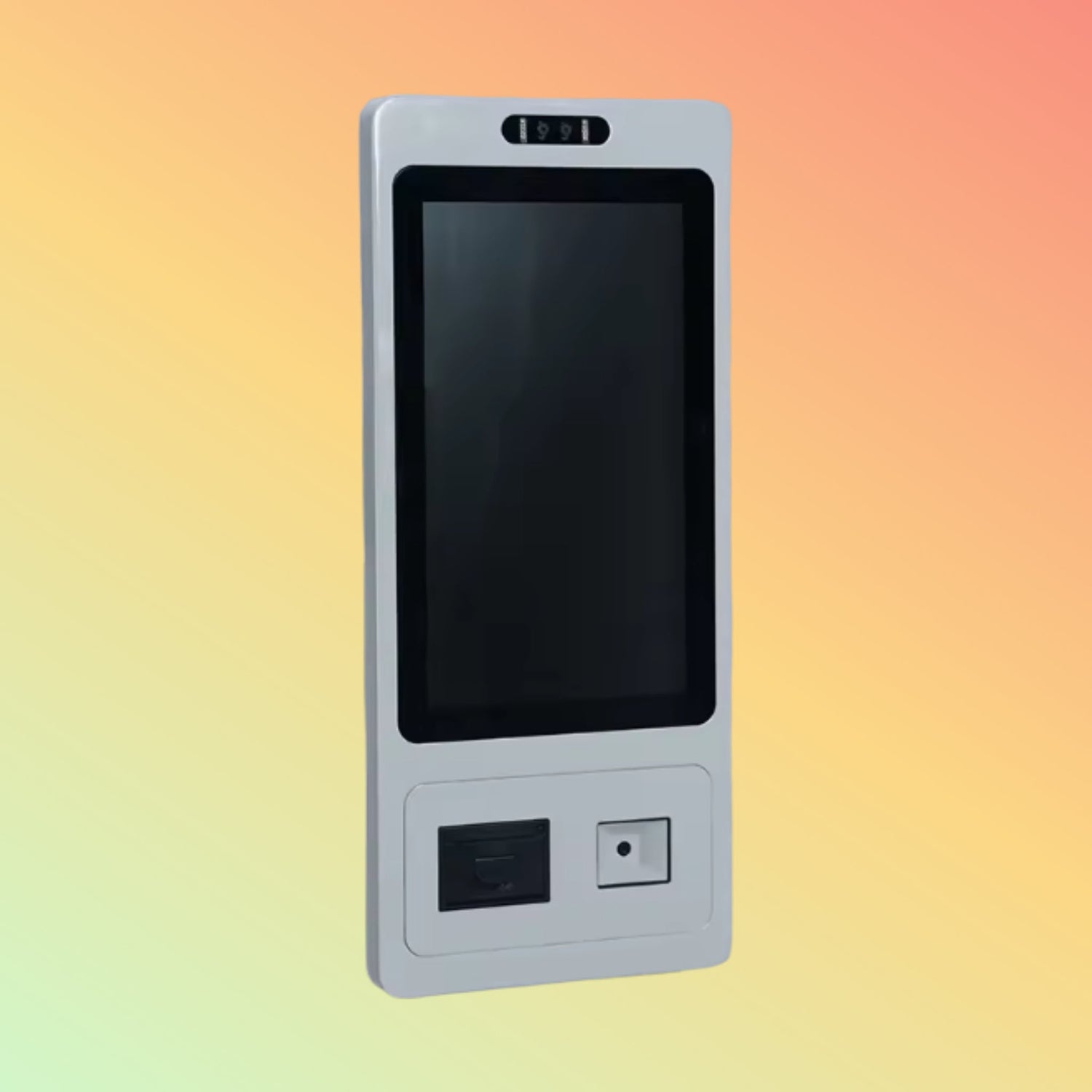 The 23.8" POS Holder Stand is a versatile self-service kiosk solution that can be mounted on the wall or floor. With its slim design and adjustable installation options, it’s perfect for retail shops, restaurants, and ticketing counters that need a stylish and space-saving POS kiosk.