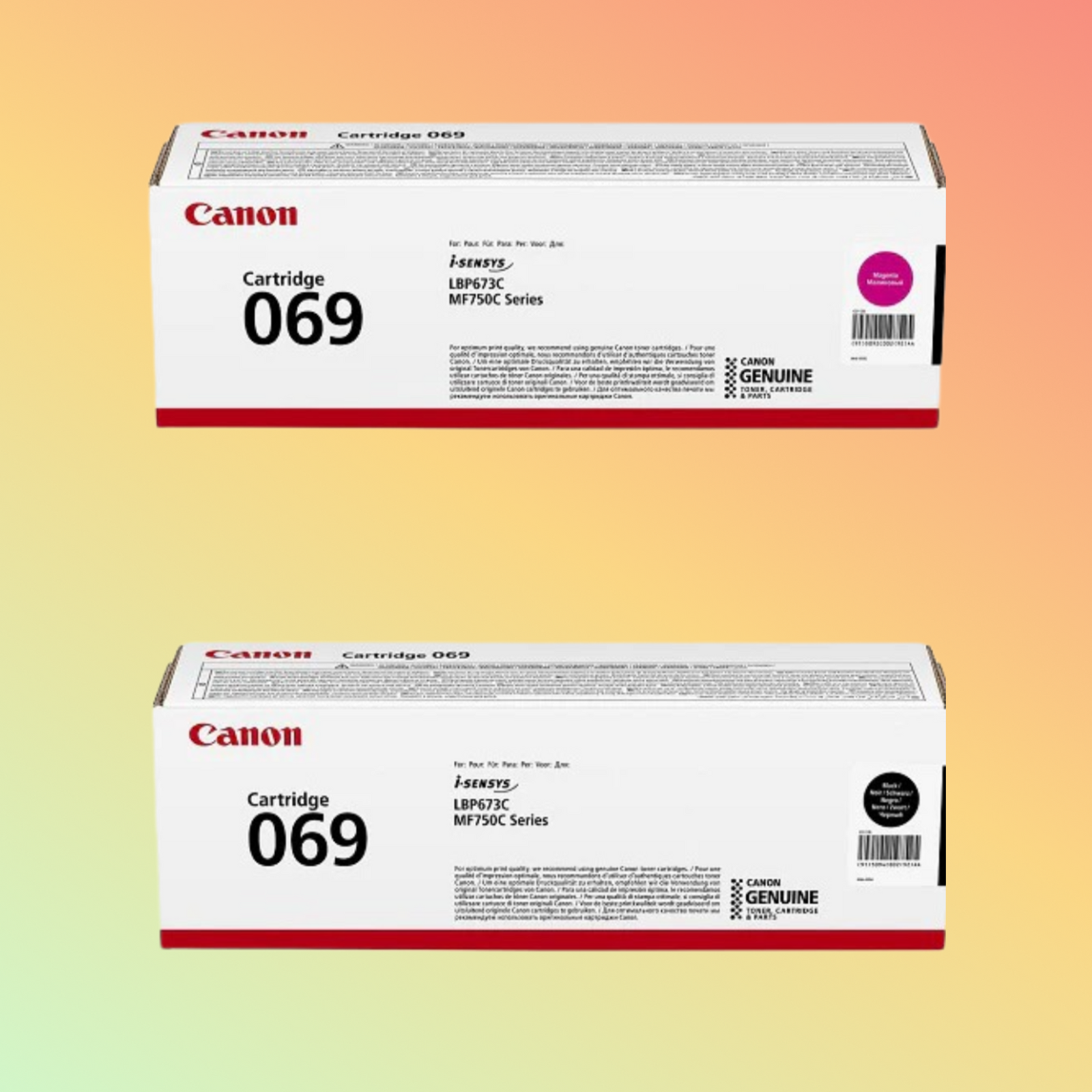 LBP673, MF752, और MF754 प्रिंटर के लिए Canon 069 4-कलर टोनर सेट के साथ जीवंत प्रिंट प्राप्त करें। पेशेवर परिणामों के लिए उच्च उपज और गुणवत्ता।
