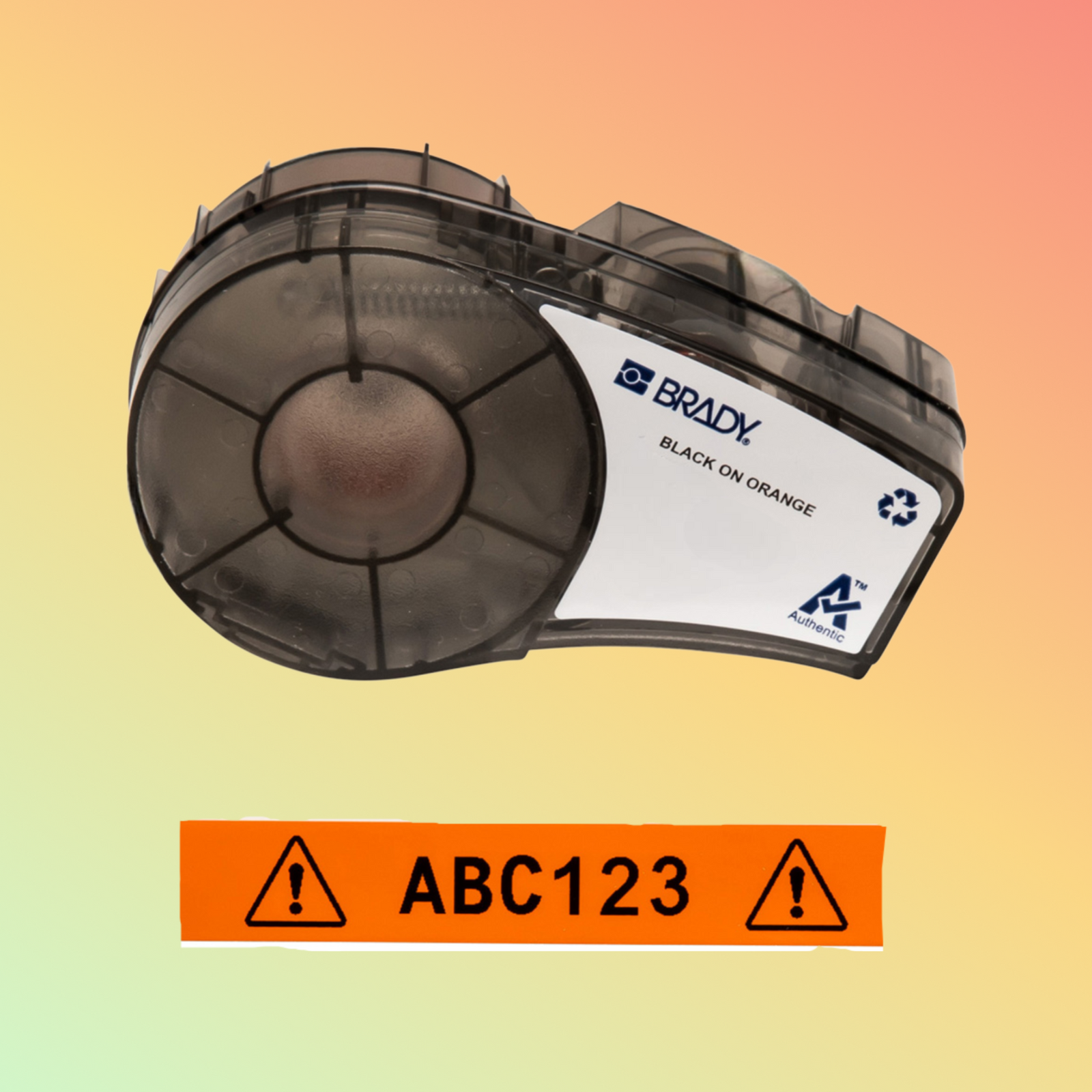 उच्च गुणवत्ता वाला 0.5" ऑल-वेदर विनाइल लेबल टेप, नारंगी पर काला, M21 प्रिंटर के लिए डिज़ाइन किया गया। औद्योगिक और आउटडोर लेबलिंग अनुप्रयोगों के लिए बिल्कुल सही।