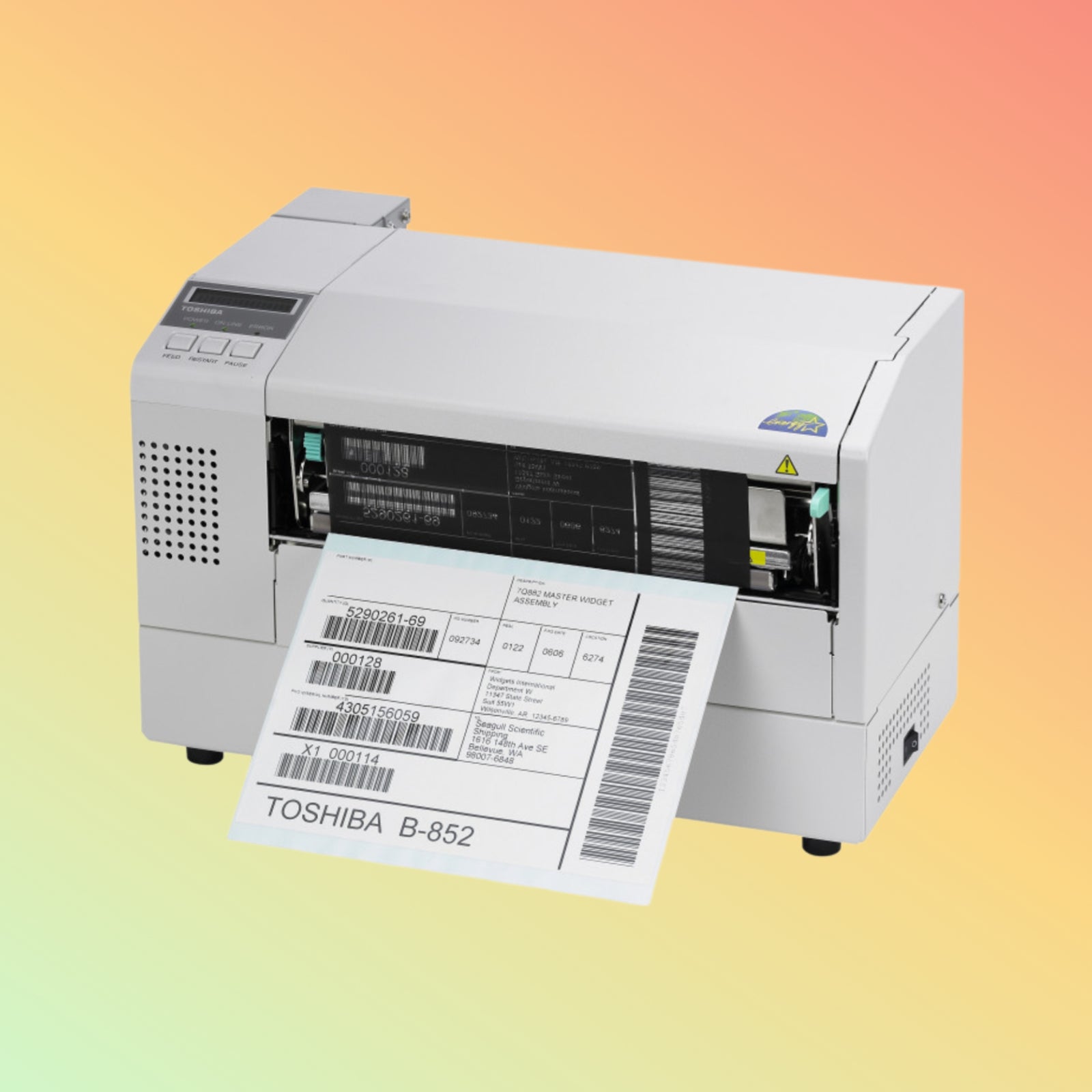 वाइड-फॉर्मेट, हाई-रिज़ॉल्यूशन लेबल प्रिंटिंग के लिए Toshiba B-852 लेबल प्रिंटर खोजें। मज़बूत डिज़ाइन और उन्नत कनेक्टिविटी के साथ औद्योगिक उपयोग के लिए आदर्श।