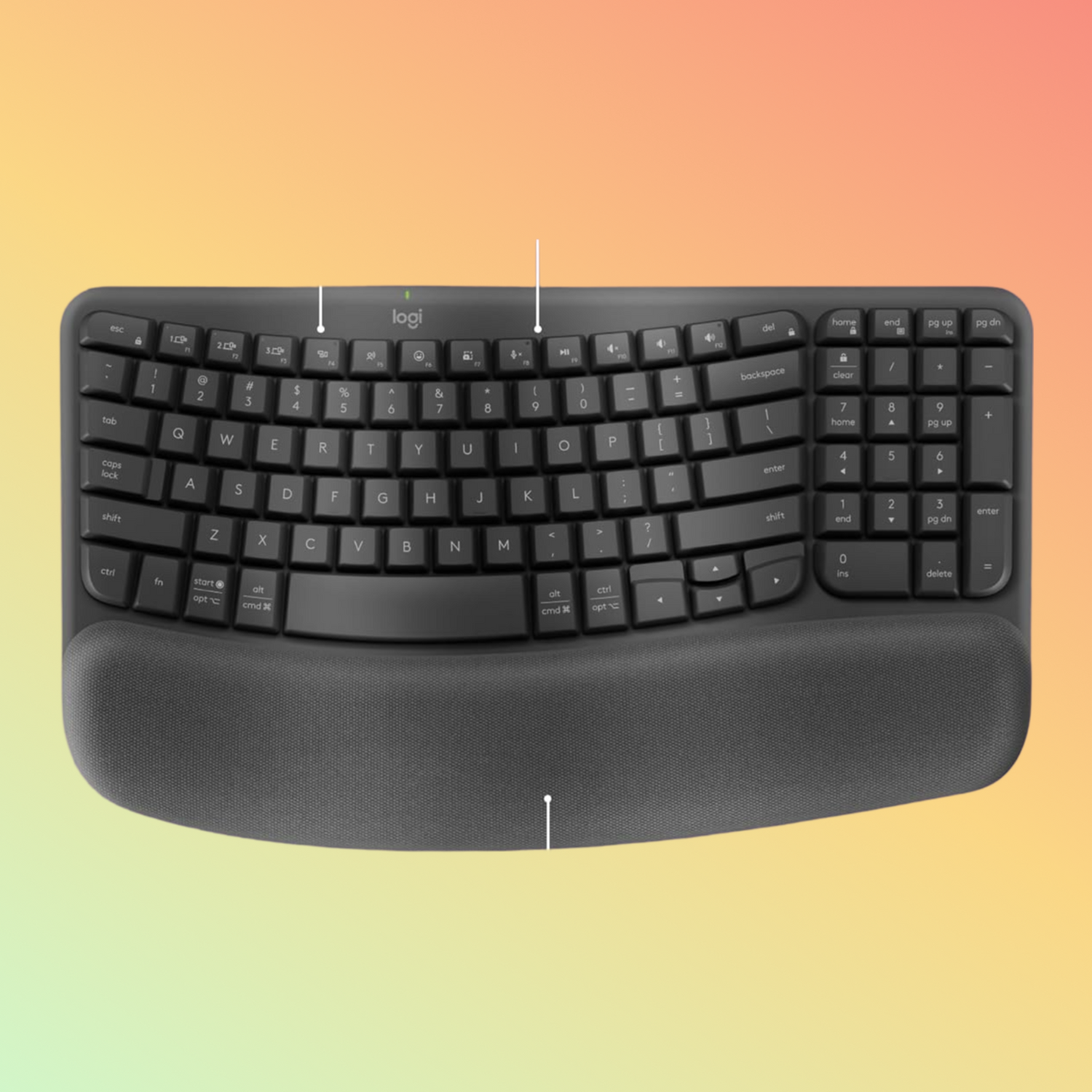 Upgrade your workspace with the Logitech Ergo Series WAVE KEYS FOR BUSINESS Wireless Ergonomic Keyboard. This keyboard features a distinctive wave-shaped design that helps keep your hands in a natural position, reducing strain and enhancing comfort during long typing sessions. The cushioned palm rest provides extra support, keeping your wrists in a relaxed, neutral position. With quiet, low-profile keys that deliver a responsive typing experience, the WAVE KEYS keyboard is perfect for business professionals looking for comfort and efficiency. The wireless design offers flexibility and a clutter-free workspace, making it ideal for any office setup.