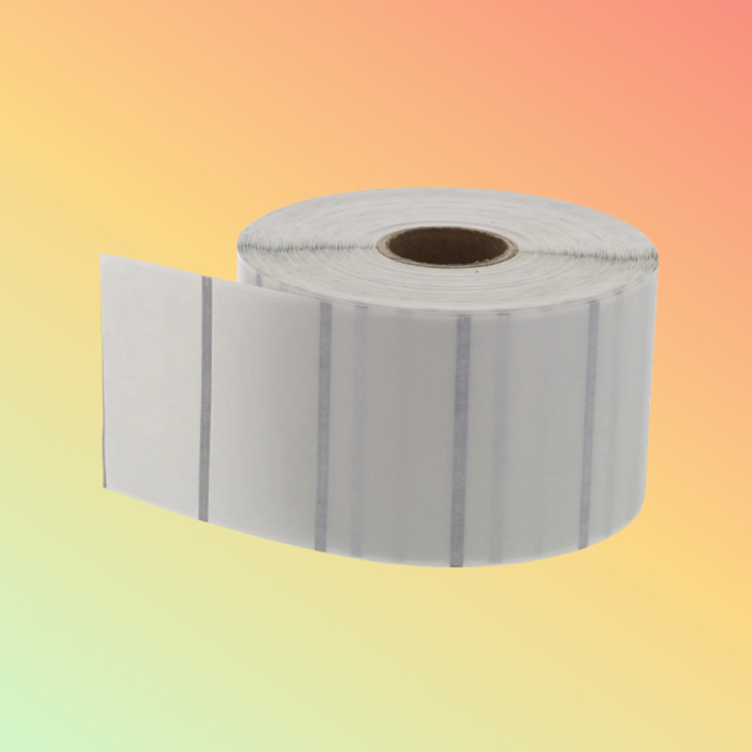 Load the roll into your thermal transfer printer, ensuring proper alignment. These labels are designed for ribbon printing, providing high-quality and durable prints. The sensor marks on the back make registration easy, ensuring accurate printing every time.