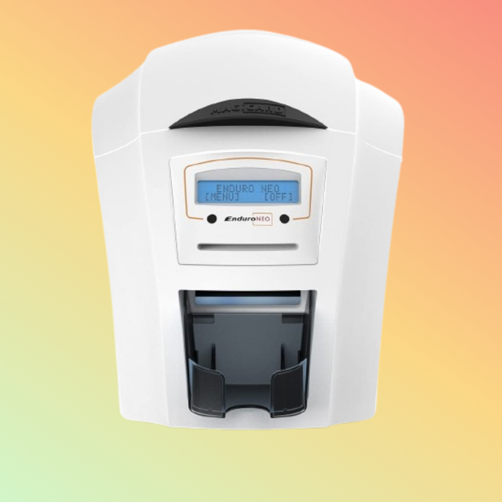 The Magicard Enduro NEO is a versatile and dependable ID card printer designed for businesses, educational institutions, and government agencies. With its dual-sided printing capabilities, the Enduro NEO delivers efficient, high-quality ID card production while offering customizable security features, such as the Holokote® watermark, for added protection against unauthorized duplication.