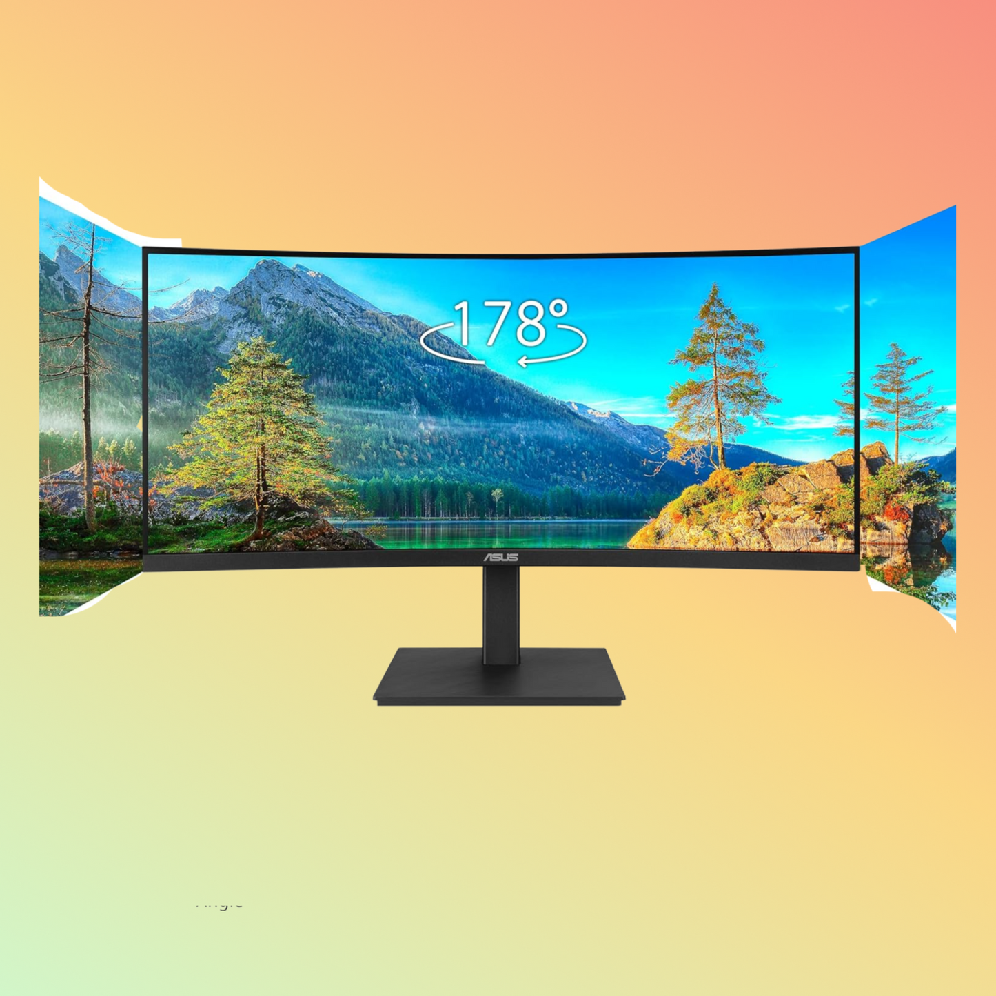 The ASUS VA34VCPSN features a sleek, curved design that enhances the viewing experience by drawing you into the action. Its ultra-wide 34-inch screen offers an expansive field of vision, making it perfect for multitasking, gaming, and content creation. The monitor's ergonomic stand allows for height, tilt, and swivel adjustments, ensuring comfortable viewing angles for extended use.