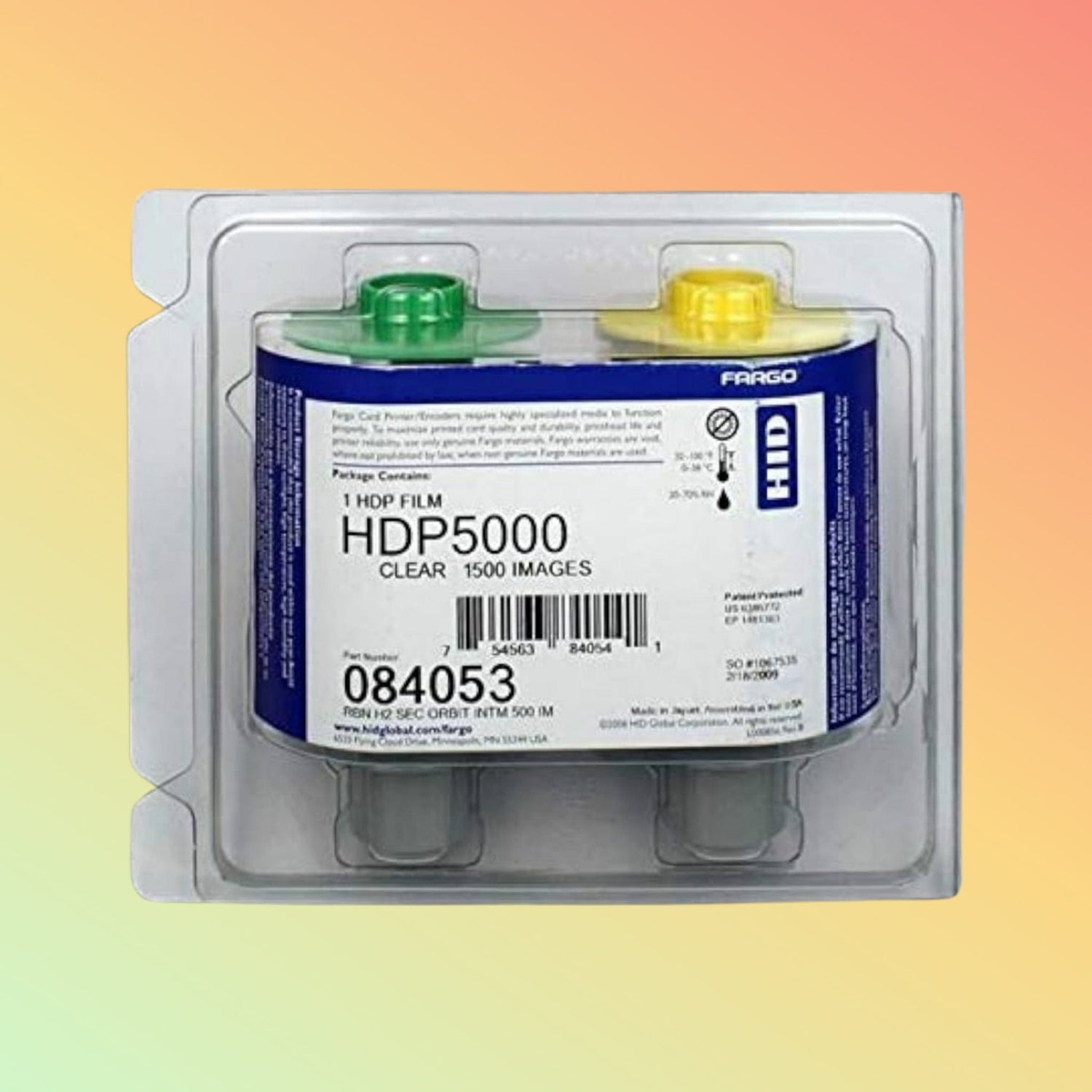 This genuine Fargo 84053 HDP film, with the capacity to print 1,500 images per roll, is specifically engineered for use with HDP5000 and HDPii card printers. The film's clear quality ensures crisp, vibrant images and text for all your ID card needs.