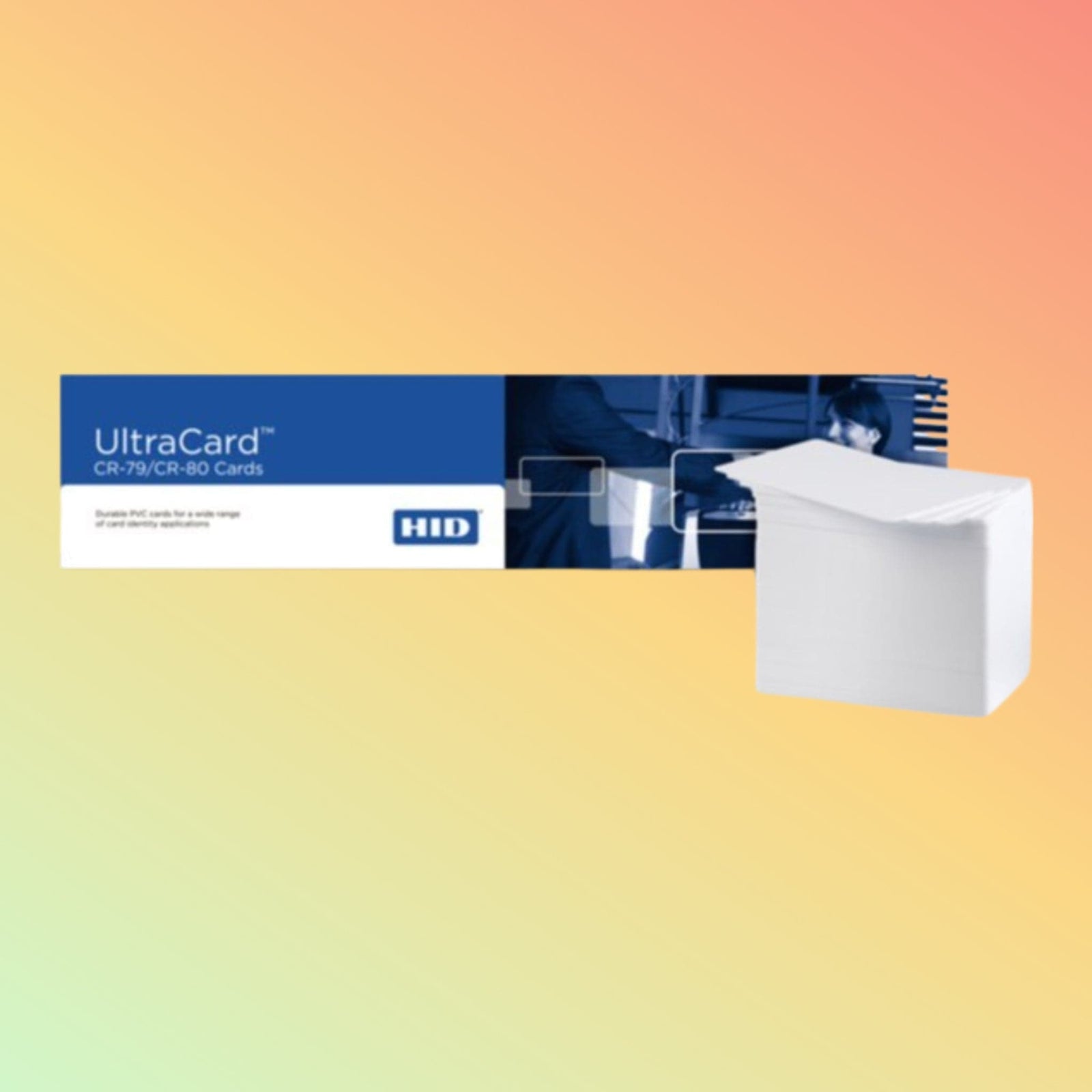 High-quality Fargo Ultra CR80 30 Mil PVC ID Cards, perfect for ID printers. Pack of 500 durable blank white cards for printing crisp text and vibrant images.