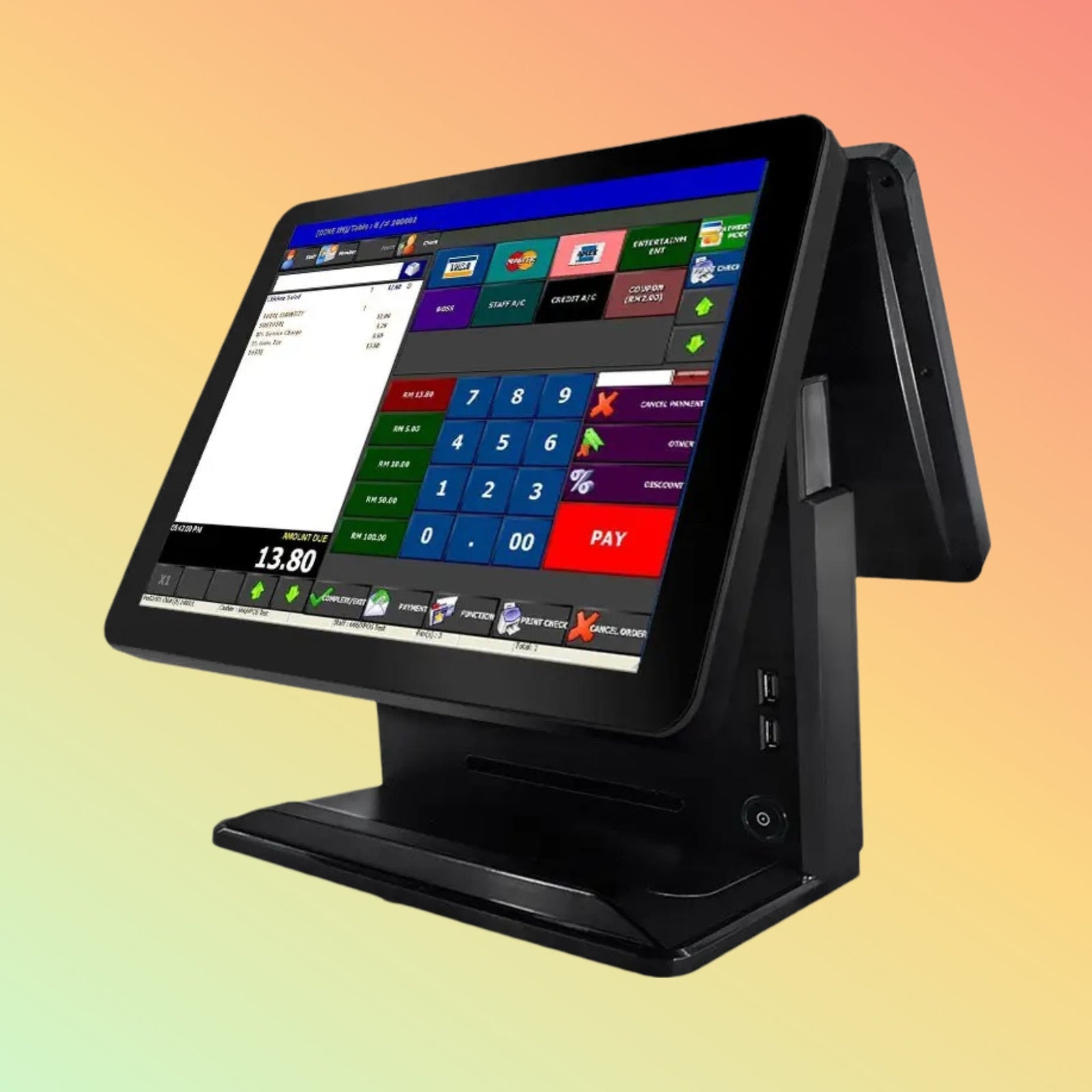 The NEOPOS NP-R1200 Dual-Screen POS Terminal is a stylish, reliable, and highly efficient solution designed specifically for restaurants, cafés, and retail outlets. Equipped with powerful Intel Core i5 performance, dual screens, and built-in magnetic stripe reader (MSR), it delivers seamless operations and excellent customer interaction.