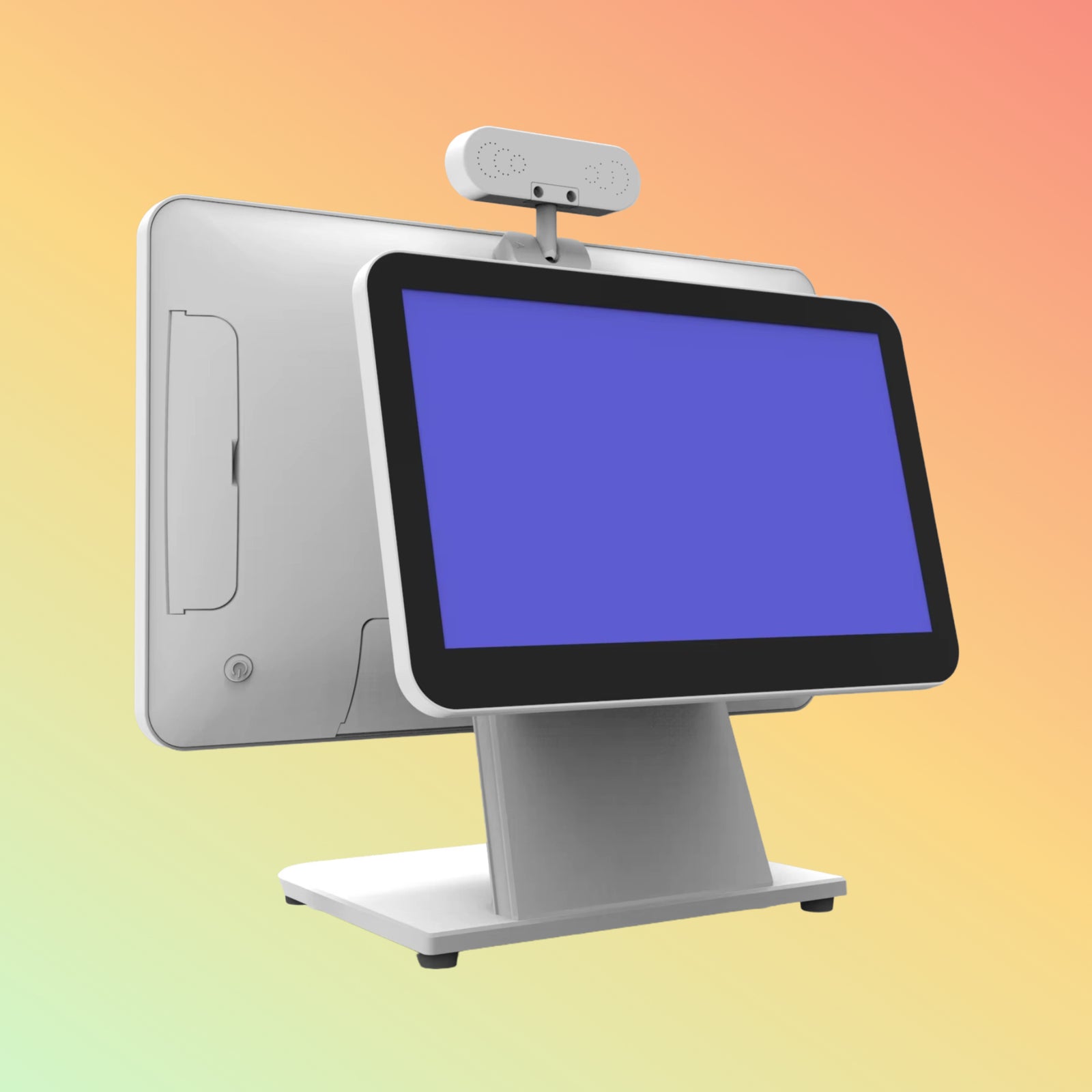 Dual Display: Features a 15.6” main touch screen and 11.6” second display for customer engagement.